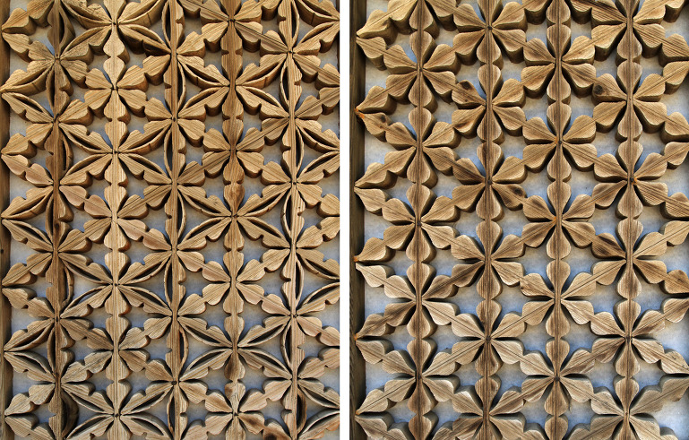 옛날에는 덩굴을 얽히게 한 모양의 부조를 하였고 나중에는 가장자리에 꽃모양을 새긴 것에서 유래함
