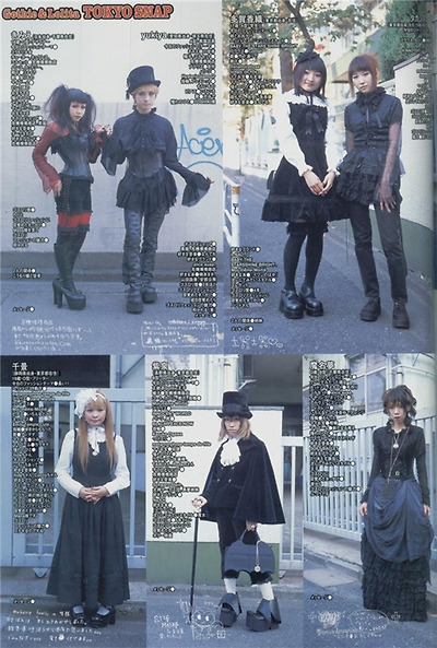 이 고딕 스타일은 현재 고스 룩으로도 불리며 매니아를 늘려가고 있고, 인형 같은 롤리타 룩에도 영향을 주어 일본의 고스로리나 고스펑크를 파생시켰다. 예를 들어 만화 <데스 노트>의 사신 류크의 스타일은 보다 현대적이고 캐주얼한 펑크 룩에 가까운데, 이처럼 자주 혼용되기도 하는 펑크 룩은 70년대의 영국 펑크록으로부터 출발해 반항적인 문구의 찢어진 티셔츠와 타탄체크가 등장한다는 점에서 고스 룩과 차이를 보인다.