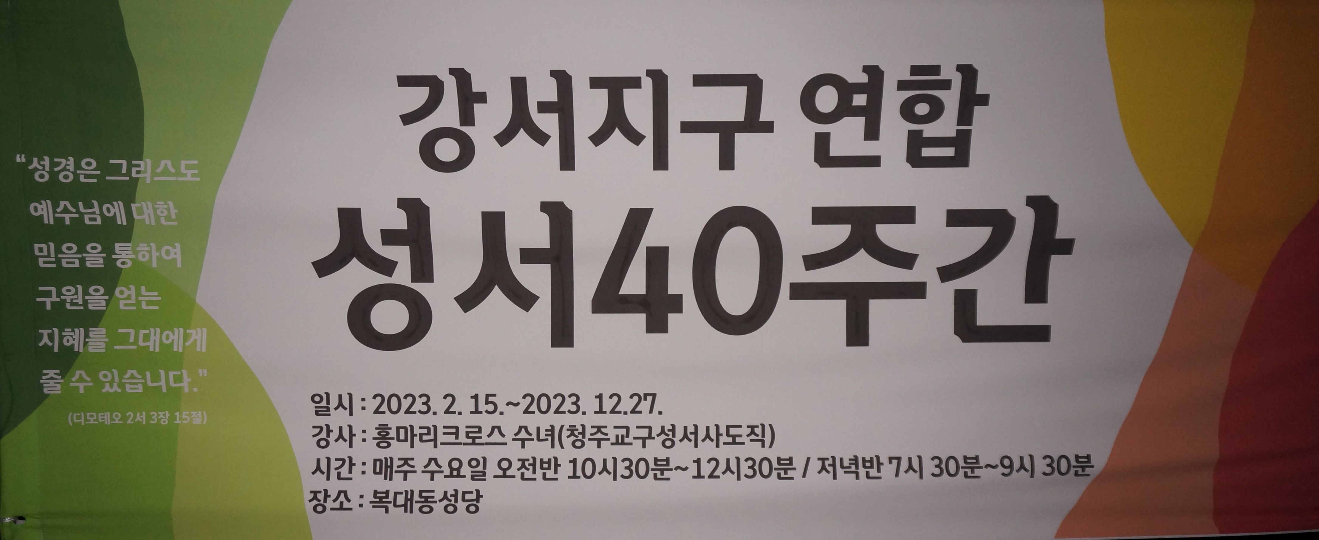 2023. 2.15 성서40주간 첫날 작성자이동스튜디오 [요셉농원]|작성시간23.02.15|조회수81 목록 댓글 0 글자크기 작게가 글자크기 크게가 강서지구 연합성서40주간일시 : 2023.2.15~2023.12.27. 다음검색 현재 게시글 추가 기능 열기 북마크 공유하기 신고 센터로 신고 댓글 댓글 0 댓글쓰기 댓글 리스트
