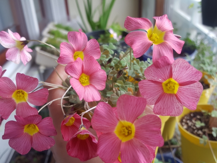 애태우다 늦게 싹튀우고 꽃피워준 사랑초.참 이쁘다