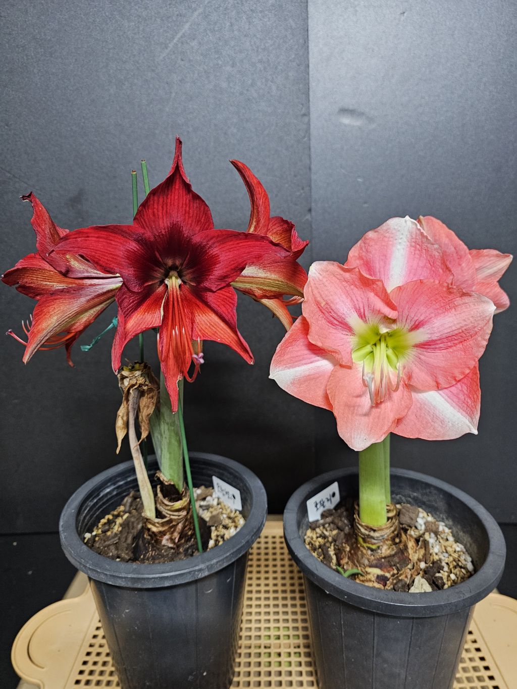 사진 한두장에 의존해서 아마릴리스를 들이다보니 막상 꽃이 피면 실물과의 차이에서 오는 실망과 놀라움이 교차할 때가 많아요.