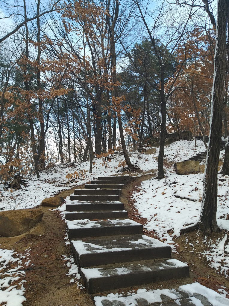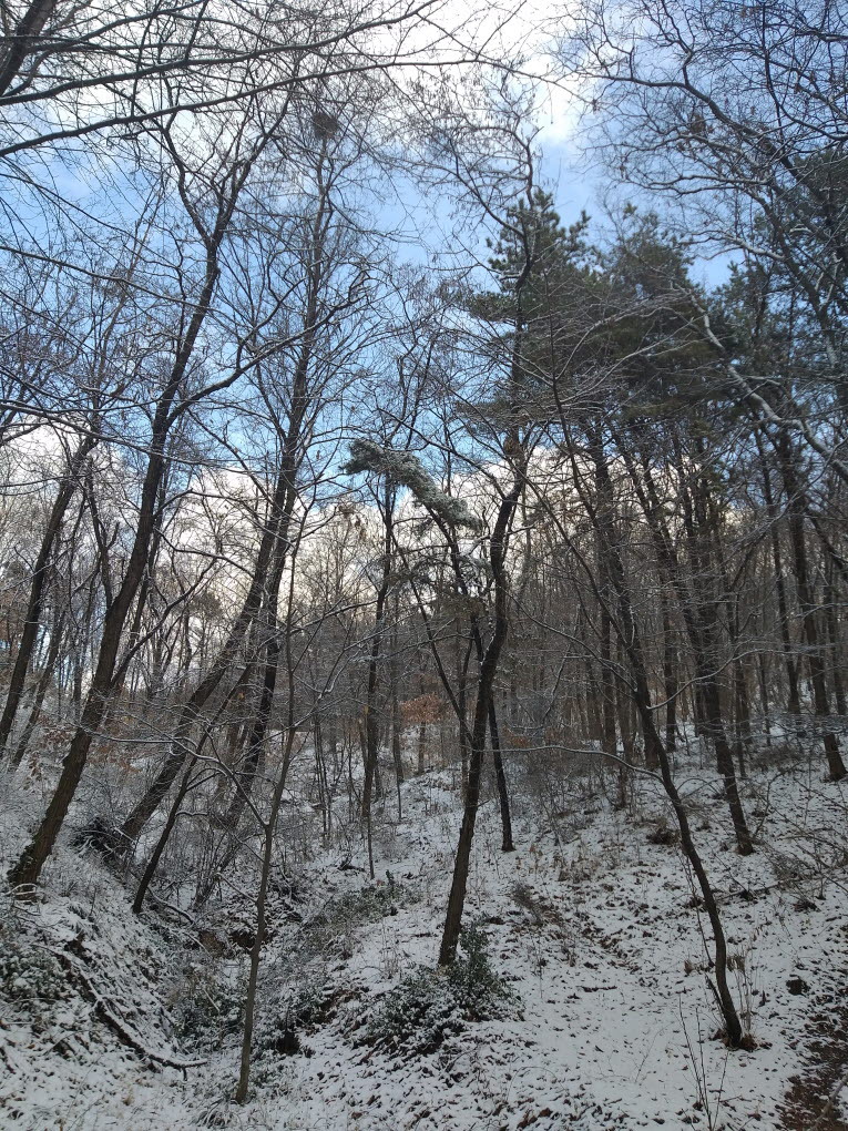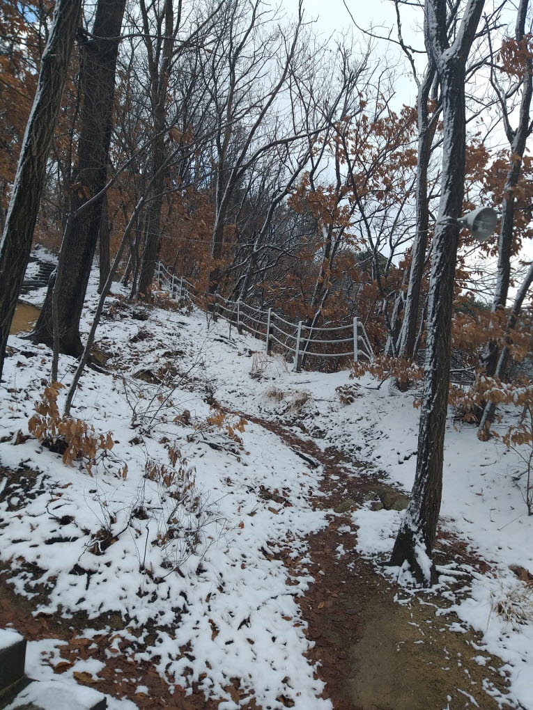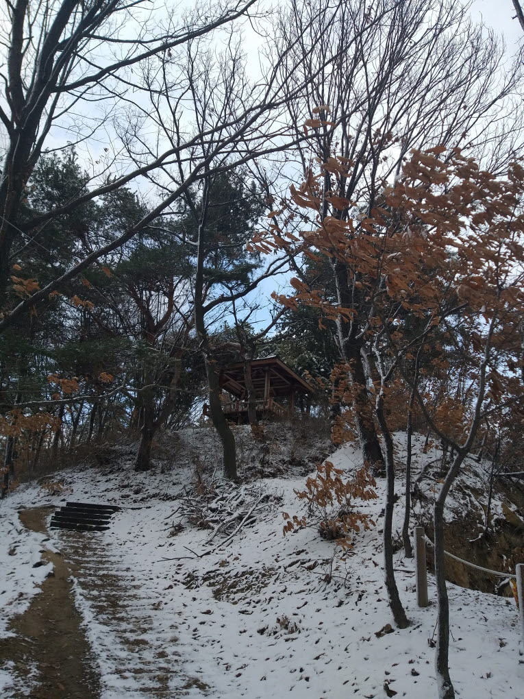 반가운 함박눈을 영접하기 위해 초저녁 무렵 가까운 산에 혼자 올라가 보았습니다.