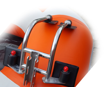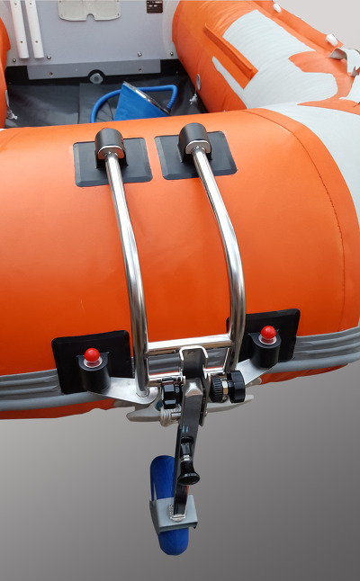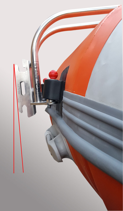 딩기 브라켓이 살짝 보트 안쪽으로 기울어진
