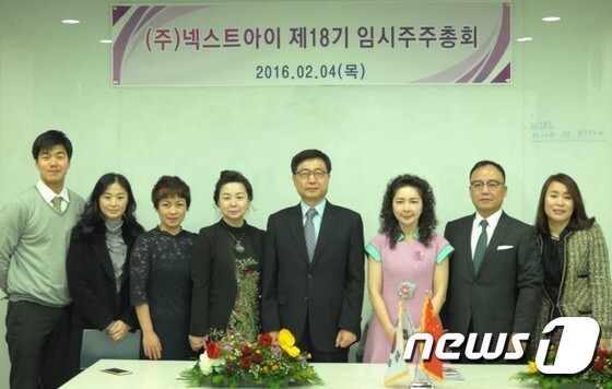 넥스트아이는 지난 4일 임시주주총회를 통해 최대 주주가 중국 유미도 뷰티 체인 그룹으로 변경됐다. 왼쪽부터 조희운 실장, 김려원 이사, 장효여 팀장,진양 등기이사, 이수월 감사, 진광 대표, 류동휘 이사, 안옥화 이사(넥스트 아이 제공)© News1 travel