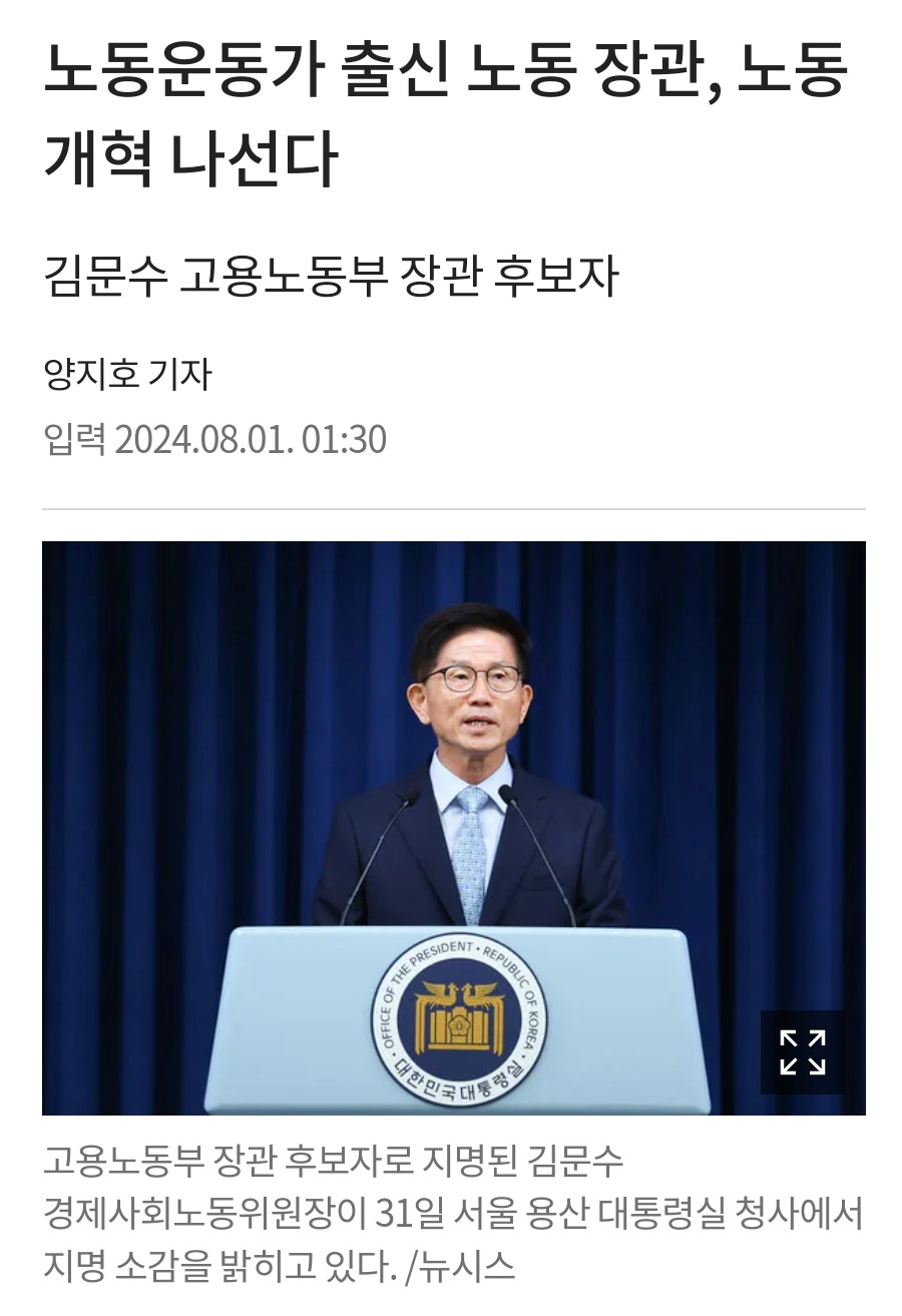 채널A News 2024. 8. 1. #김문수 #고용노동부장관 #고용노동부장관후보자