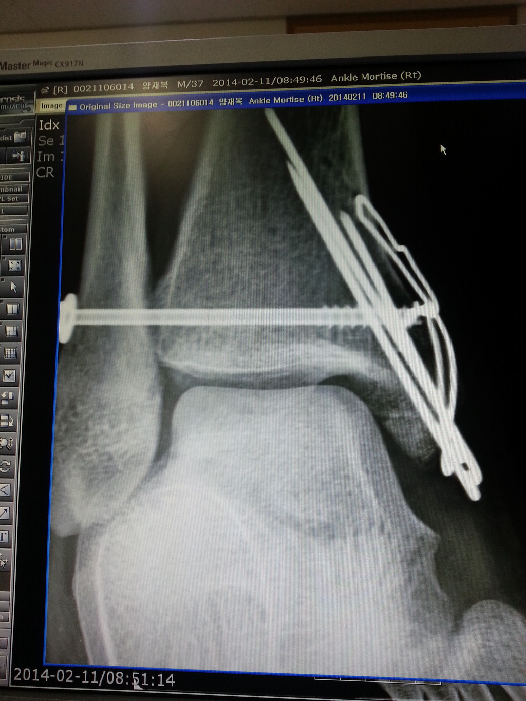 빙판에서 넘어져 양과골절로 2013.12.31.사진과같이 수술하였구요