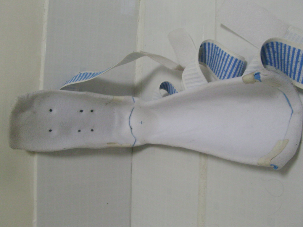 나의경우는 발크기에 맞는 넘을 갖다가 종아리뼈의 크기와 발크기에 맞게 반깁스를 제단하여 찍찍이를 붙이고는
