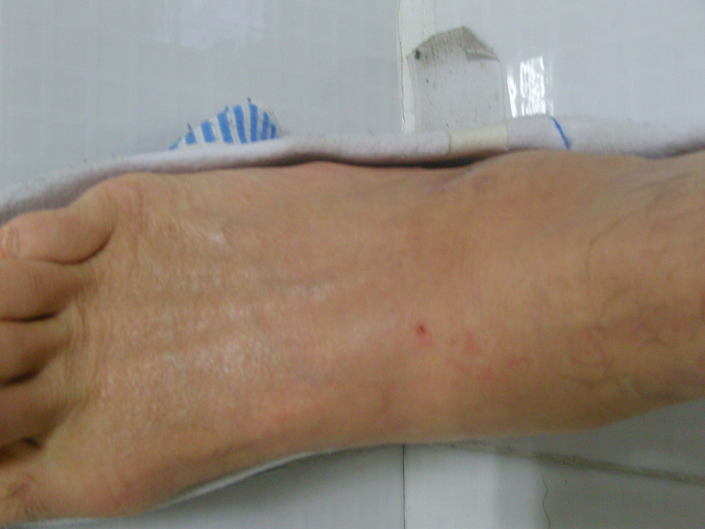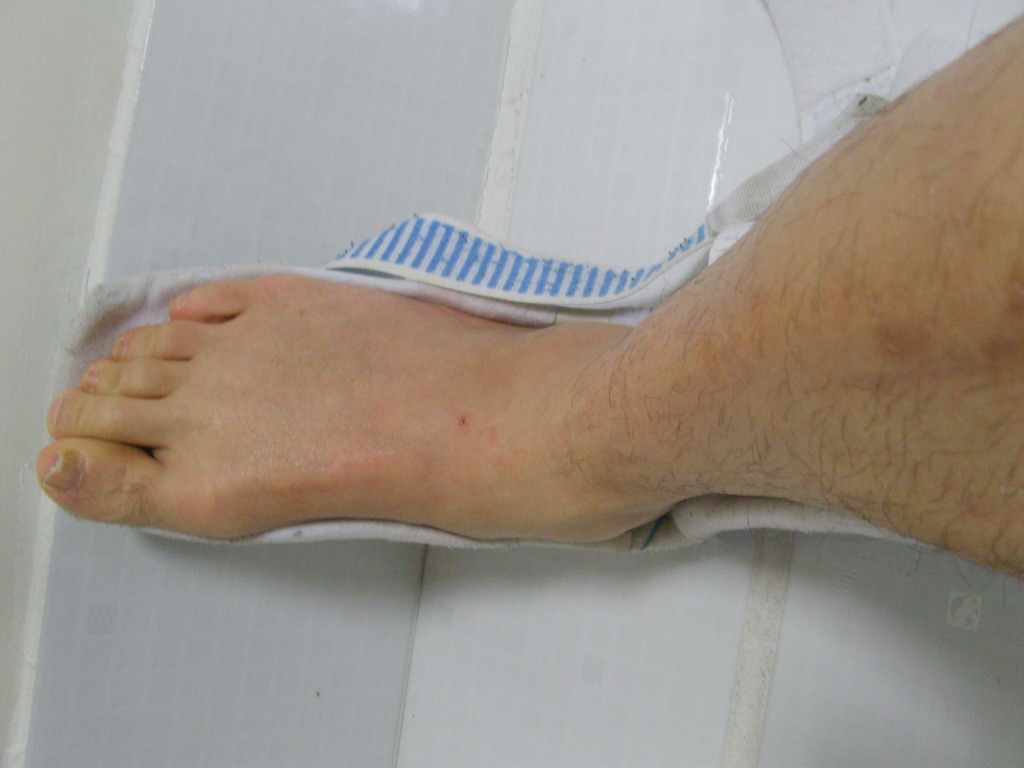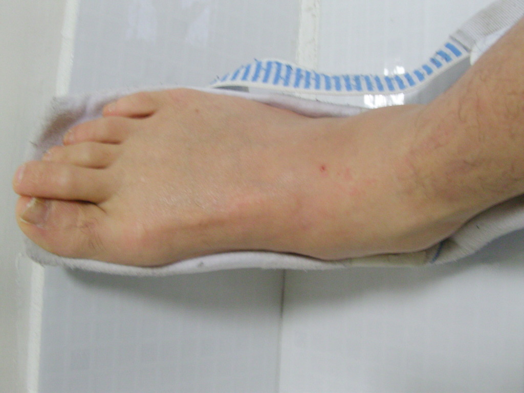 목발을 짚고 다니기 시작하면서 부터 발의 모양에 맞지를 않아 뼈가 튀어 나온 부분이 불편(통증)했다.