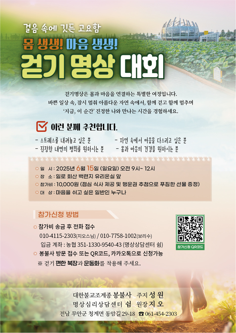 명상의 대중화, 일상화를 위해 걷기 명상대회를 개최합니다.