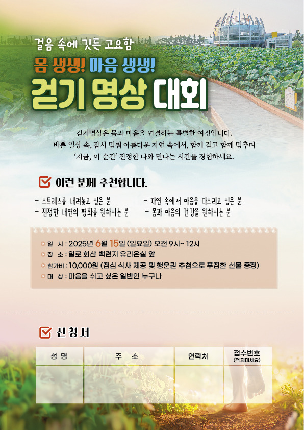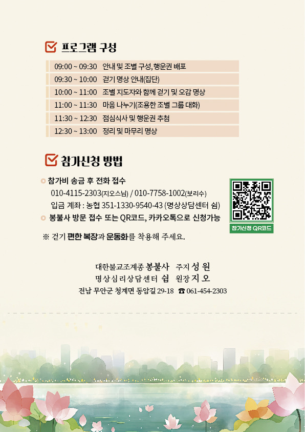 아름다운 일로 회산 백련지에서 처음 시행되는 걷기명상대회에