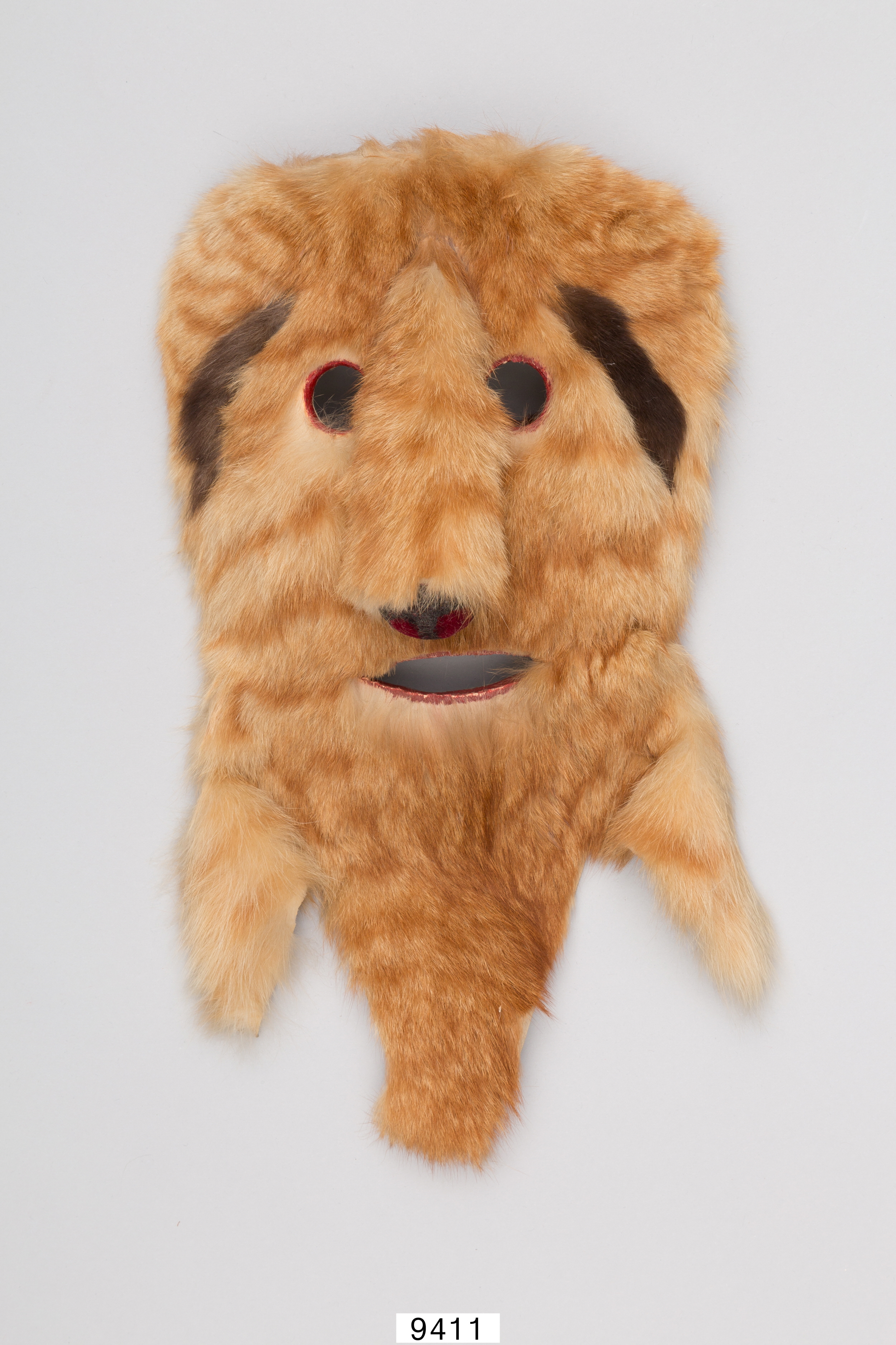 할미 : 바가지로 만들었으며 갈색 바탕에 점은 노란색으로 찍었으며 눈과 코와 입이 삐뚤다