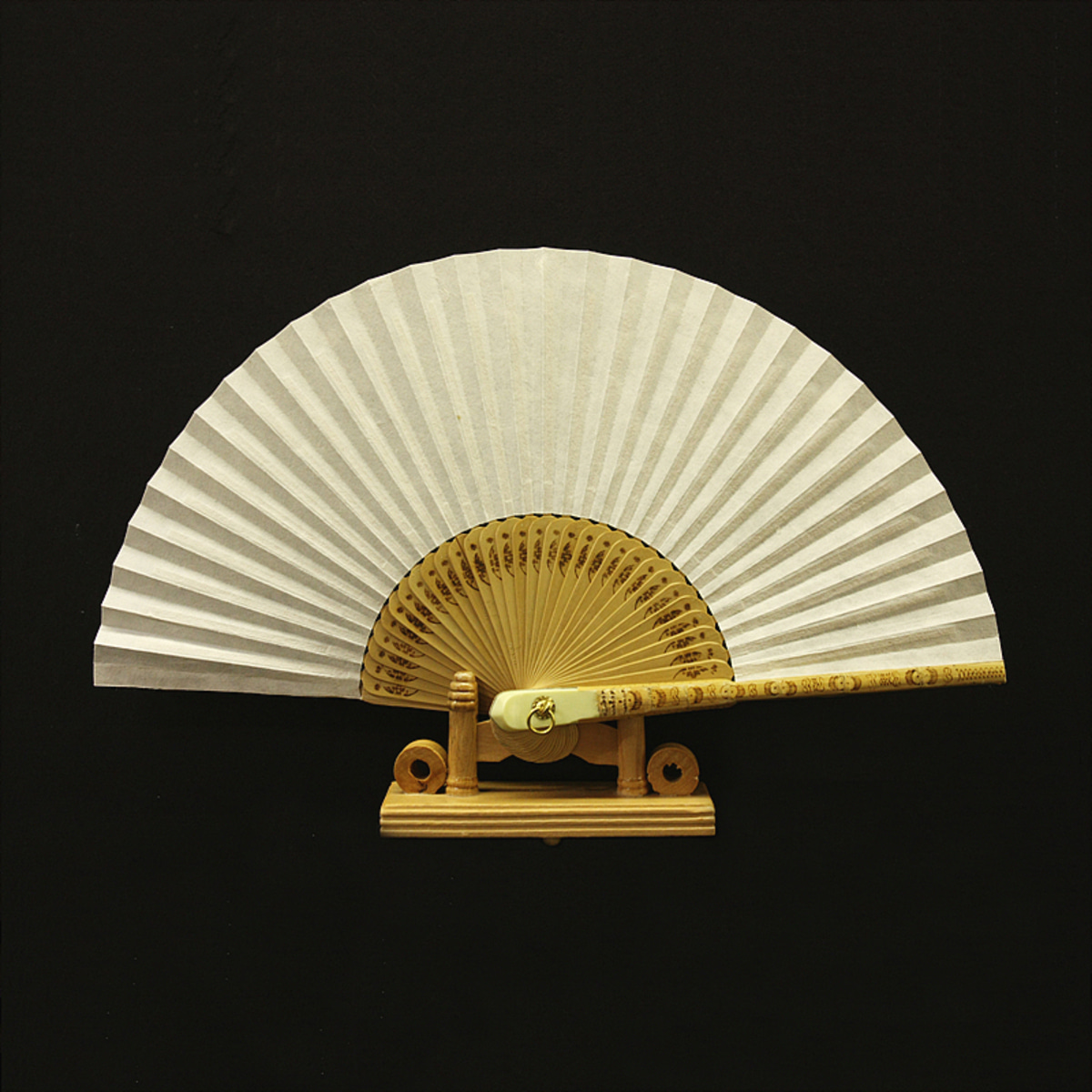 목각선 : 목각선 이라고 하는 합죽선으로, 겉에 나무를 둥글게 깎아 말아 붙인 점이 특징이다.