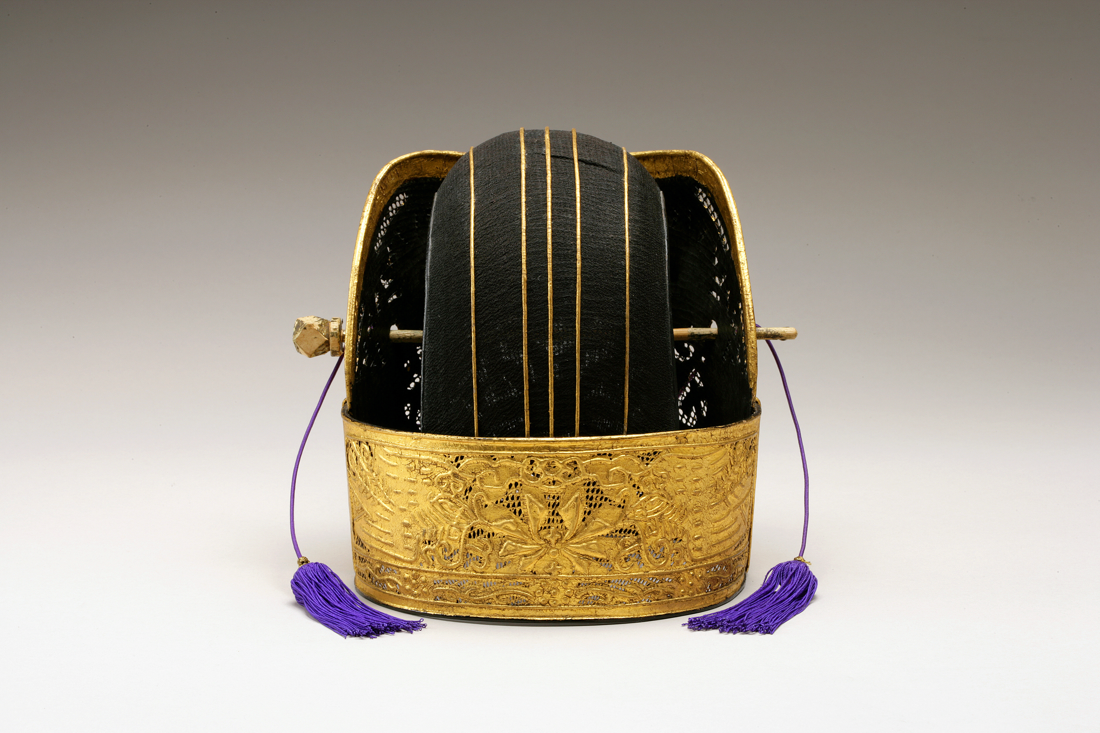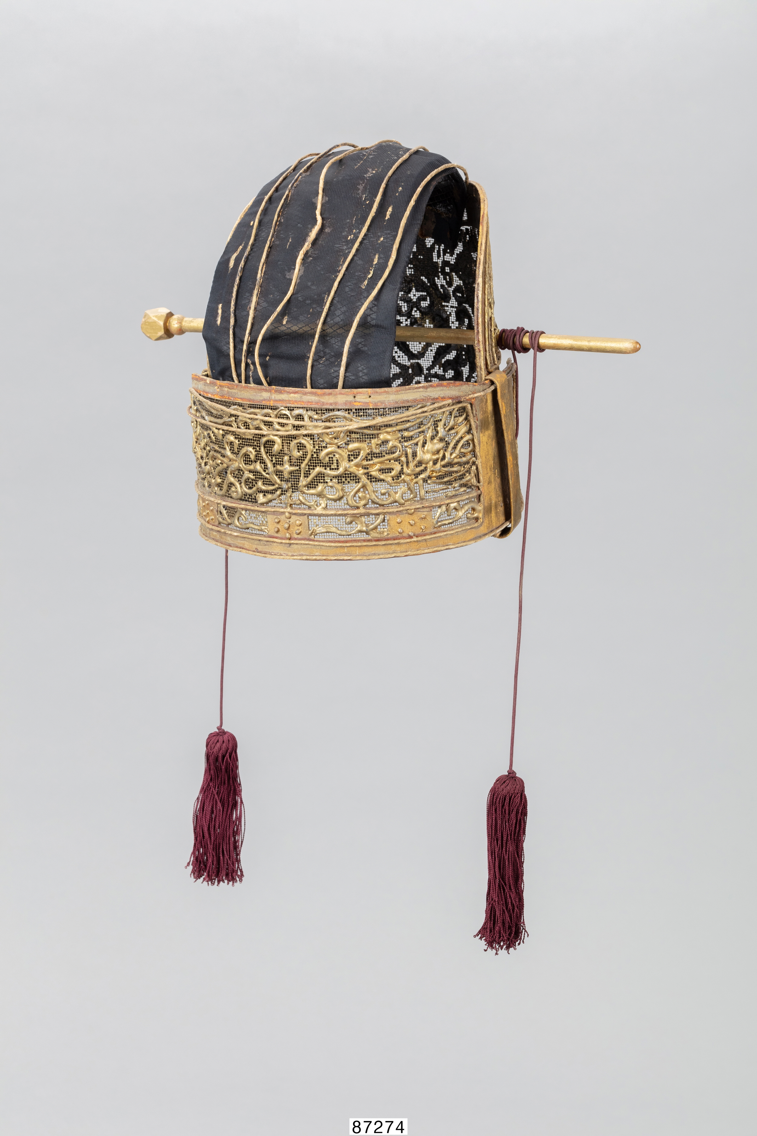 종립(鬉笠) : 조선시대 기병(騎兵)들이 쓰던 챙이 큰 갓으로 머리에 쓰는 모자(帽子)와 차양부분인 양태(凉太)로 구성되었고. 가늘게 쪼갠 대나무로 뼈대를 잡고 말총으로 엮어 만든 것으로, 모부가 좁고 양태가 넓은 형태다 전체적으로 흑칠(黑漆)이 되어 있으며. 모자의 양쪽으로 공작새 깃털을 장식하고 이를 흑색의 끈으로 둘러 묶어 매듭 지었다 갓 안쪽의 모자 부분 양쪽에 갓끈(끈 길이 67.5)이 하나씩 달려 있다