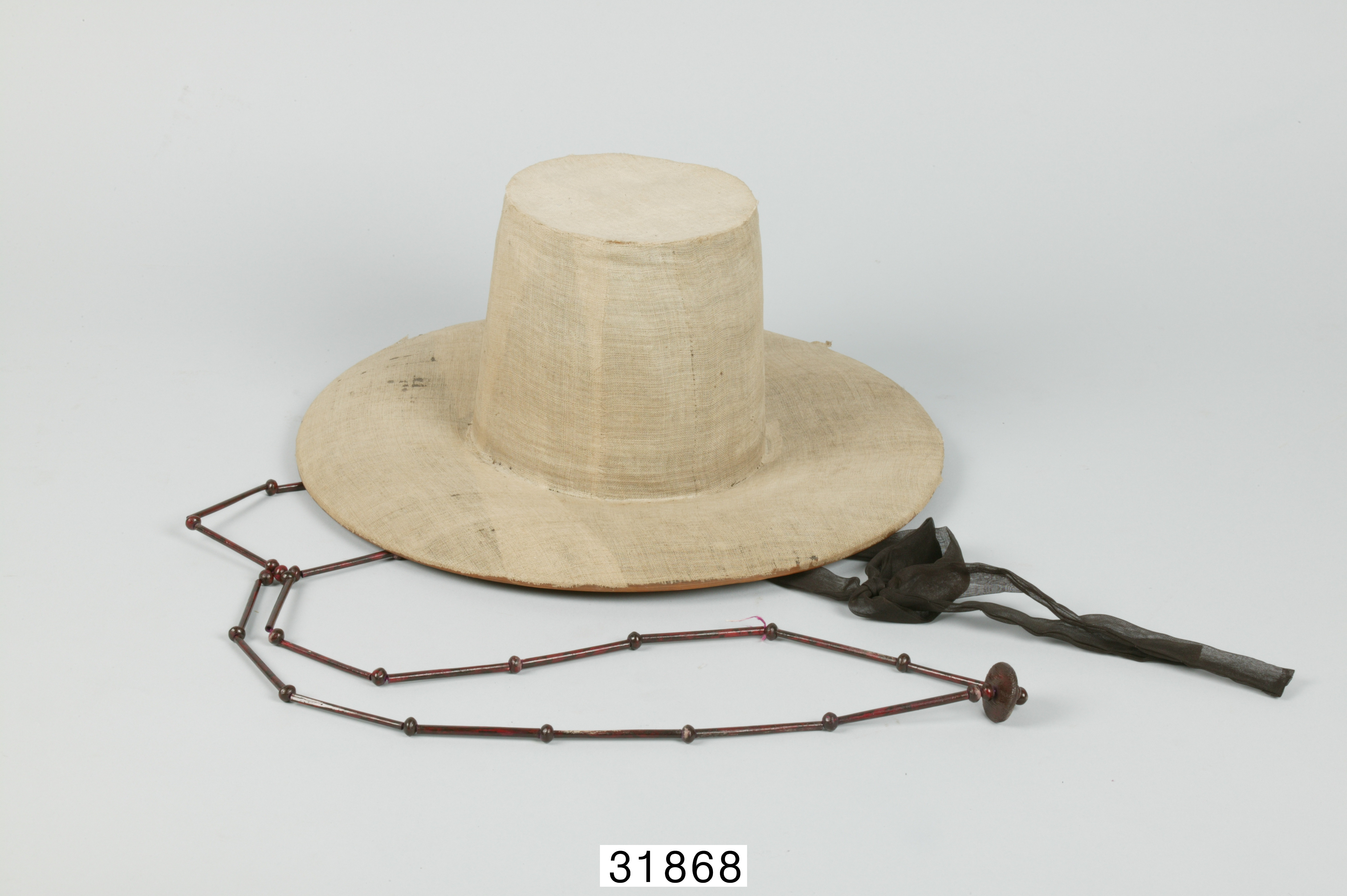 백립 : 흰갓을 말하며 조선시대 때 나라에서 왕이나 왕비가 돌아 가시거나 집안에 부모님 또는 어른이 돌아 가셨을때 상복과 함께 착용한 모자로 흰 말총과 대나무를 엮어서 만들었다