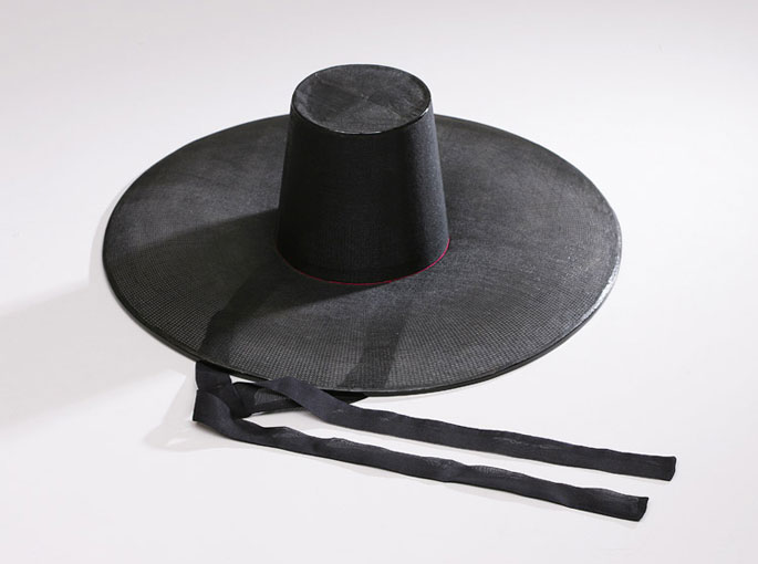 흑립 : 우리나라를 대표하는 모자이며 한국의 전통 모자다 삼국시대 때 부터 썼으며 고려시대에는 대나무를 엮어 만든 죽립 위에 검정 옻칠을 해서 만들어 썼으나 조선시대에 들어서면서 말총과 대나무 명주천으로 만든 갓이 생기면서 조선왕조 500년을 상징하는 모자가 된다 양반들은 주로 도포를 입고 큰 갓을 쓰고 다녔으며 중인과 평민들은 두루마기를 입고 작은 갓을 썼다고 한다 개화기랑 해방 후 6.25 한국 전쟁과 1960년대에도 몇몇 시골 노인들이 갓을 쓰고 다녔으나 지금은 갱정유도 도인들과 국악인 그리고 한복을 좋아 하는 사람들이 쓴다고 한다