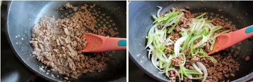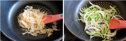 팬에 식용유를 두르고 마늘쫑과 양파를 살짝 볶아낸다