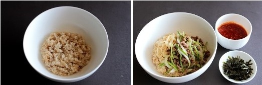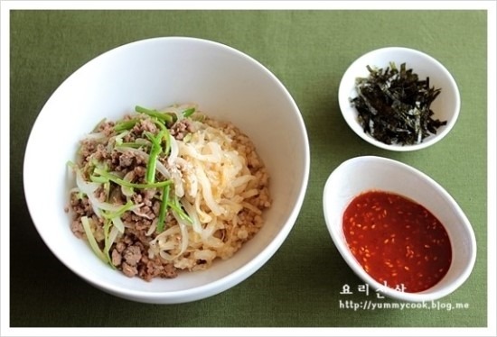 소고기 양념: 간장 1/2큰술, 다진마늘 1/2큰술, 올리고당 1작은술, 맛술 1/2큰술,