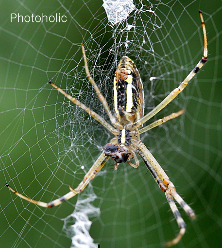 00254 ▲ 거미의 식사 : 거미가 자신이 쳐놓은 그물에 걸린 작은 파리를 먹고 있습니다. 삶이 곧 죽음 입니다.
