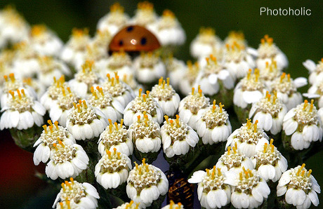 00303 ▲ 말미잘이야...아니...톱풀꽃이야.. :톱풀꽃이 마치 바다 속의 말미잘처럼 보입니다.꽃위에 앉은 무당벌레는 마치 조개처럼 보이구요..톱풀은 쌍떡잎식물 초롱꽃목 국화과의 여러해살이풀로 산과들에서자생하며 한국,일본,중국,동시베리아,북아메리카에 분포 합니다.
