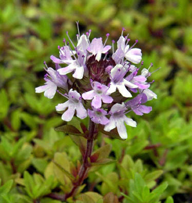 00283 ▲ 섬백리향 : 꽃이 필때 향이 백리를 간다하여 백리향이란이름이 붙은 낙엽활엽성 소관목으로 꽃과 전초에서 특유의 향기를 강하게풍겨 지피식물로 효과가 대단히 좋다. 가지는 옆으로 뻗으며, 6월경 홍자색의 꽃이 핀다. 식물체의 지상부분을 활용하는데 거풍작용이 있어서 관절염,동통,굴신이 잘 안되는 증상을 치료한다.