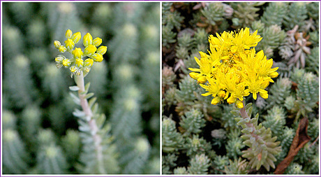 파랑세덤에 대한 일반적인 설명 입니다. 봄에 꽃이 피구요.사진 왼쪽은 막 봉우리가 피어나는 모습이고 오른쪽은 완전히 만개한 모습 입니다.전 개인적으로 왼쪽의 피기전 모습이 더 좋습니다.