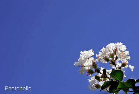 00249 ▲ 흰배롱나무꽃 : 하얗게 핀 배롱나무꽃이 .... 시리도록 파아란 하늘아래서 하늘거리고 있습니다.