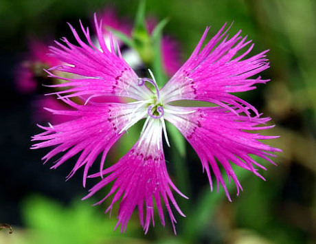 00265 ▲ 수염패랭이 꽃 : 쌍떡잎식물 중심자목 석죽과의 여러해살이풀로 원줄기는 네모지고 높이 30∼50cm로 자란다. 잎은 마주달리고 밑부분이 합쳐져 원줄기를 감싸며 타원형 바소꼴이고 밑가장자리에 털이 있다.꽃은 6∼8월에 피고 지름 1cm 정도이며 흔히 붉은바탕에 짙은 무늬가 있으나 여러 가지 색깔이 있다.
