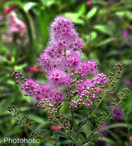 수술은 꽃잎보다 길고 붉은색이며, 꽃밥은 노란색이고 씨방은 4∼7개이다.열매는 골돌과로 9월에 익으며 털이 난다. 여름철 밀원식물이다. 정원수나 울타리용으로 심고, 어린 잎을 먹는다. 민간에서는 뿌리를 약재로 쓴다. 아시아와 유럽의 온대에서 아한대에 걸쳐 분포한다. 아스피린의 원료로도 쓰인다.