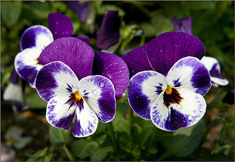 00295 ▲ 비올라(서양 제비꽃) : 삼색제비꽃이라고도 한다. 유럽 원산이다.높이 15∼30cm로 작은 편이며 1개의 꽃대 끝에 1송이의 꽃이 핀다.꽃은 흰색·노란색·자주색의 3가지 색이나 여러 형태의 혼합색이 있고,우량 계통이 계속 나오고 있어 오렌지색·붉은색·푸른색 등도 많으며,