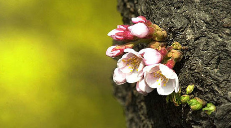 00267 ▲ 아기 벚꽃 : 노오랗게 개나리가 농익은 봄을 노래할 때 힘겹게두터운 껍질을 뚫고 나와 어렵사리 꽃을 피운 벚꽃을 보았습니다.