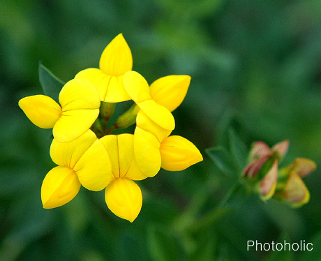 노란 꾀꼬리 새끼처럼 예쁜 풀이 어떤 속도로 퍼졌는지를 알 수 있다. 벌노랑이는 한송이씩 피나 서양벌노랑이는 줄기 끝에 산형화서로3∼7송이씩 뭉쳐 피는 것이 별다르다. 모두 콩과에 들며 콩과식물의꽃모양은 모두 나비처럼 생겨서 특히 접형화라고 부른다./난지도하늘공원에서 촬영하였다.