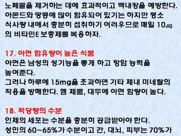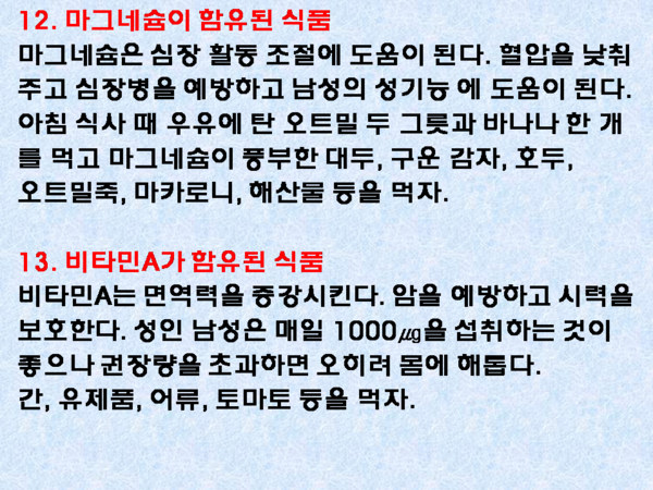 남성들이 보충해야 할 영양소 18개 작성자길동무(울산)|작성시간23.08.16|조회수11 목록 댓글 0 글자크기 작게가 글자크기 크게가 길동무추천 0조회 218.11.15 20:20댓글 0북마크공유하기기능 더보기 다음검색 현재 게시글 추가 기능 열기 북마크 공유하기 신고 센터로 신고 댓글 댓글 0 댓글쓰기 답글쓰기 댓글 리스트