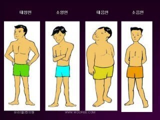 소양인은 그 수가 많고 비교적 구별하기 쉬운데 말하는 모습이나 몸가짐이 민첩해서 경솔하게 보이는 경향도 있다. 하체보다 가슴 수위 상체가 발달하고 하체가 가벼워 걸음걸이가날렵하다. 소양인의 성격은 솔직 담백하고 의협심이나 봉사정신이 강하다. 그러나 지구력이 부족하여 싫증을 잘 내고 체면도 빠른 편이다. 따라서 일을 벌이기는 잘하지만 말무리가 미흡하기도 하다. 타인의 시선과 평가에 민감하여 항상 의식하여 두려움이 커지며 병증으로 건망증이 나타나기도 한다. 소양인에게 건망증은 건강에 이상이 생긴 신호로 판단하여도 무방하다. 소양인은 위장의 소화기능이 답답하여 위로 올라가는 기운이 많고 탈수가 발생하기 쉽다. 소양인은 소화기에 열이 많고 급한 성격으로 당뇨, 고혈압 알레르기성 질환의 위험성이 많다, 따라서 열을 내려주는 서늘한 기운의 음식이 좋다. 소양인에게는 비만을흔히 볼 수 있는데 이것은 성격으로 인한 빠른 식사와 스트레스 폭식을 하는 습관에 기인한것이다. 따라서 식사를 보다 천천히 하는 습관을 기르고 스트레스를 받았을 때 음식물 섭취이외의 취미생활로 추는 r서이 중요하다. 따라서 운동을 하더라도 짧은 시간에 끝내는 종목이 유리하며 장거리를 뛰는 마라톤보다 중거리, 단거리가 좋으며 스키, 테니스 복싱 태권도등이 좋고 축구와 같은 단체전에서는 골키퍼와 같은 최전방이 적합하다. 산을 오를 때는 가파른 산을 짧게 타는 것이 좋다. 신장기능이 약하므로 장거리 산행보다는 거리는 짧지만 운동량이 많은 경사진 산을 타서 띰을 빼는 것이 좋다. 이로운 음식: 보리, 팥, 녹두 배추, 오이. 상푸,수박,딸기,바나나.생굴,잉어,돼지고기,생맥주, 빙과류 등)해로운 음식: 열을 내거나 발산 작용이 강한 차, 마늘, 고추, 생강, 후추, 닭고기, 개고기, 노루고기, 꿀, 인삼 등 ■ 소음인 대체적으로 체구가 왜소하고 상체보다 하체가 균형있게 발달하였고 보통은 키가 작은데드물게 장신도 있다. 전체적으로 체격이 말랐으며 어깨가 빈약하여 외롭게 보이고 앞으로 고개를 수그린 구부정한 자세를 보이기도 한다. 소음인은 내성적이고 수줍음이 많아 자기 표현력이 부족하고 질투심이나 시기심이 많다. 사색을 즐기는 선비형의 소음인은 야무진 일 처리와 세심하며 다정다감한 면이 있는 반면 적극적이고 활동적인 면이 다소 부족하며 정신적 스트레스를 많이 받는다. 비위기능이 약한 소음인은 소화에 문제가 없다면 건강한 상태로 보아도 무방하다. 속이 냉한 소음인은 음식의 기운이 따듯하고 위로 상승하는 것이 좋다. 소음인은 판단력, 책임감, 분석력 등이 뛰어난 치밀함이 있으나 체력 면에서는 다소 약하다. 따라서 운동을 하더라도 정확성과 집중력을 요구하는 탁구, 배드민턴, 단거리달리기, 사격, 양국, 테니스 등이 적합하다. 또한 단체전에서는 자율적이고 활동적인 공격수보다는 판단력이 필요한 수비수 등이 적합하다. 소음인이 등산을 한다면 경사가 없는 평지를 산책하듯이 땀을 내지 않는 정도로 하는 게 좋다. 이로운 음식: 찹쌀, 차조, 감자, 벌꿀, 닭고기, 개고기, 염소고기, 양젖, 명태, 도미, 조기, 멸치, 민어, 사과,, 파, 마늘, 생강, 고추, 겨자, 후추 등 해로운 음식: 냉면, 참외, 수박, 찬 우유, 생맥주, 빙과류, 오징어, 돼지고기, 등과 같이 지방질이 많거나 차가운 음식 TIP: ☆ 인체의 원리 인체 장부는 상생상극의 관계 속에서 건강을 이루어 나감, 약한 부분은 영양과 운동으로 강화하고 강한 부분은 사해서 균형을 이루면 건강해짐 장기의 개념과 음양오행 외우기 : [목생화 화생토 토생금 금생수 수생목, 목극토 토극수 화극금 금극목 수극화] 木(간담)-신맛이 약, 목생화(간을 좋게 하면 심장도 좋다), 목극토(목극토해야 소화 잘 되나, 간이 너무 강하면 위장에는 해가 된다) 火(심소장)-쓴맛이 약, 화생토(심장을 좋게하면 위장도 좋아진다.), 화극금(화극금해야 어지럽지 않으나, 심장이 너무 강하면 폐대장에 해가 된다) 土(비위장)-단맛이 약, 토생금(위장이 좋으면 폐도 좋아진다), 토극수(토극수해야 냉을 막으나, 위장을 너무 강화하면 신장에 해롭다) 金(폐대장)-매운맛이 약, 금생수(폐대장이 좋으면 신장도 좋아진다), 금극목(금극목해야 간이 조절되나, 폐대장이 너무 실하면 간에는 나쁘다) 水(신방광)-짠맛이 약, 수생목(신장이 좋으면 간도 좋아진다), 수극화(수극화해야 고열을 막지만, 신장이 너무 강하면 심장이 해롭다.) 相火(혈관, 신경, 마음 등의 심포장 삼초부)-떫은맛이 약, 여기에 좋은 음식은 모든 장기에 도움 되며 심신이 편안해지며 응급처치도 된다.☆ 하루의 인체 변화 때장기상태특 징새 벽간담이약함 음과 식의 금지, 간담강화운동아 침심소장약함왼편취침금지,쓴음식,명치안마,산책 낮비위장약함 단음식, 비위장을 강화시키는 운동저 녁폐대장약함 오후부터 윗몸일으키기, 매운음식 밤신방광약함 짠맛,윗몸일으키기,궁현법, 아치법밤낮이 바뀌는 시간심포삼초약함떫은음식,보온,체조,안마 ☆ 계절의 인체 변화 \장기상태처 방봄간담이약함신맛,제철봄나물,과로삼가,강화운동여름심소장약함 쓴맛, 심한활동삼가, 강화운동