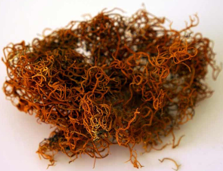 물에 타기 전의 건조상태의 외형이 마치 빨갛게 녹슨 철사줄 같은 모양인데