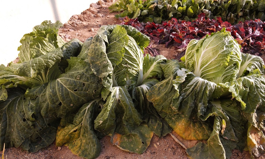 울 학교 건물이 북풍을 막아주고 남쪽 햇볕이 잘 드는 곳에 밭이 있지만 그래도 눈 맞고 밖은 많이 추운데도 안 얼고 잘 있네.