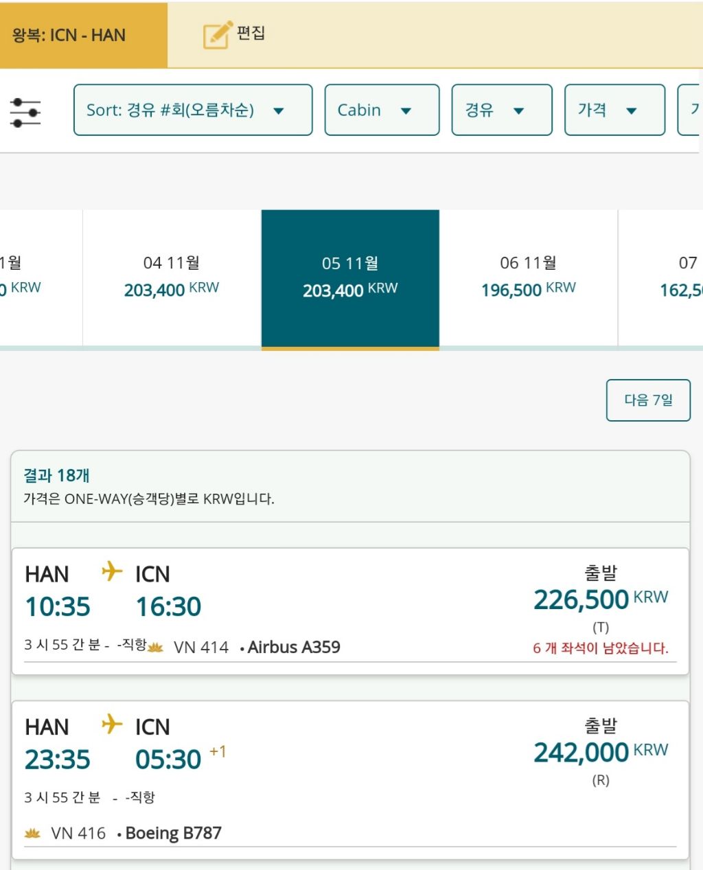 항공료는 베트남항공보다 80,000원 더 비싸네요.
