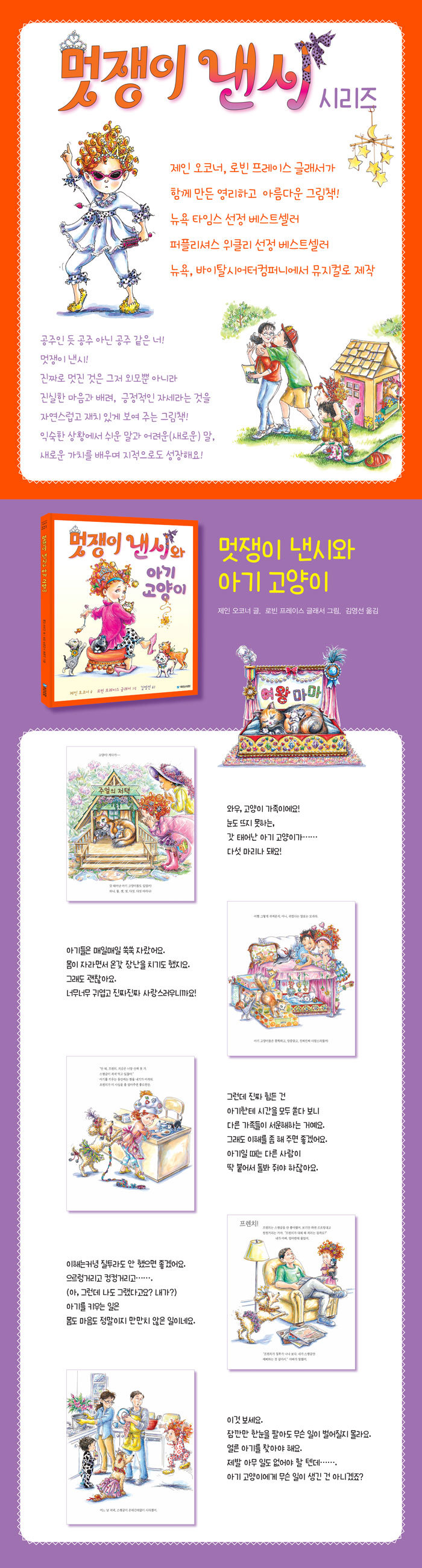 화려한 색감, 경쾌한 그림만 보면 '멋쟁이' 낸시가 그저 멋 부리는 여자아이 이야기 같아 보일 수도 있어요. 실제로 멋지다는 말도 자주 나오고요. 하지만 '멋쟁이 낸시'시리즈는 정말로 '멋진' 것은 외모가 아니라 따뜻한 마음과 배려, 깨달음과 배움이라는 메시지를 담고 있어요. 귀여운 여자아이에게 벌어지는 재미난 이야기로 봐도 재미있는 책이지만, 여러 번 읽다 보면 이 책에서 진정으로 전하고자 하는 메시지는 우리가 세상을 살면서 가져야 할 아름다운 가치, 새로운 것을 하나하나 알아가는 지적인 성장에 대한 이야기라는 것을 알 수 있어요. 묵직하면서도 무겁지 않은 메시지와 매력적인 그림 덕분에 특히 미국에서는 '멋쟁이 낸시' 그림책뿐만 아니라 낸시 캐릭터와 책을 이용한 교육 프로그램, 인형, 가방, 의류 사업도 활발하고 인기가 매우 높답니다.