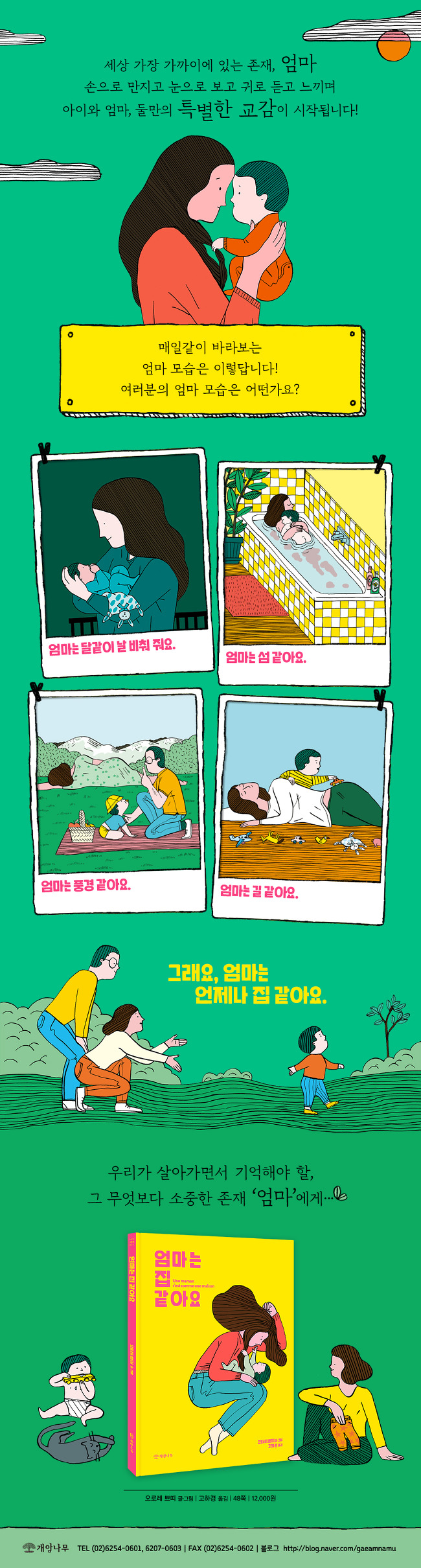키워드 | #엄마 #그림책 육아 #출산 #임신 #산모 #아이 #그림책 #부모 #어버이날 #태교 #예비엄마 #태교 #선물 #어른이 #공감 #책육아 #힐링그림책 #시그림책 #엄마사랑 #감동 #상상력 #선물하기좋은책 #어른을위한그림책 | ||