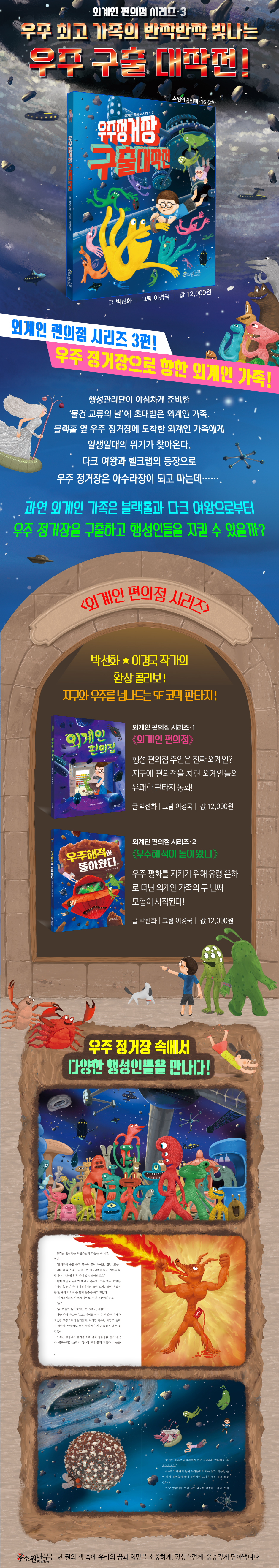 외계인 편의점 시리즈 3편, 《우주 정거장 구출 대작전》이 출간되었다. 행성 편의점에서 시작된 외계인 가족의 모험은 유령 은하를 거쳐 우주 정거장까지 이어진다.
