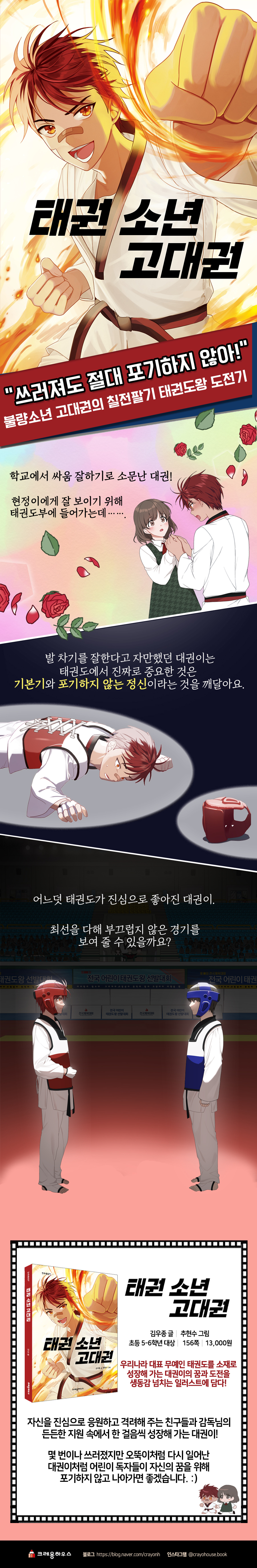 난 학교에서 싸움 잘하기로 소문난 고대권이야. 내 발 차기는 거의 예술이지. 현정이도 내 발 차기에 반했는지 태권도부에 들어오래. 현정이와 가까워지기 위해 태권도부에 들어간 나는 첫 대결에서 주장인 민수 형을 넘어뜨리고 태권도 천재로 거듭났어. 그런데 도영이 녀석은 사사건건 나를 못 잡아먹어서 안달이야. 내 기본기가 부족하다나 뭐라나. 두고 봐, 나 고대권이 태권도가 뭔지 제대로 보여 줄 테니!