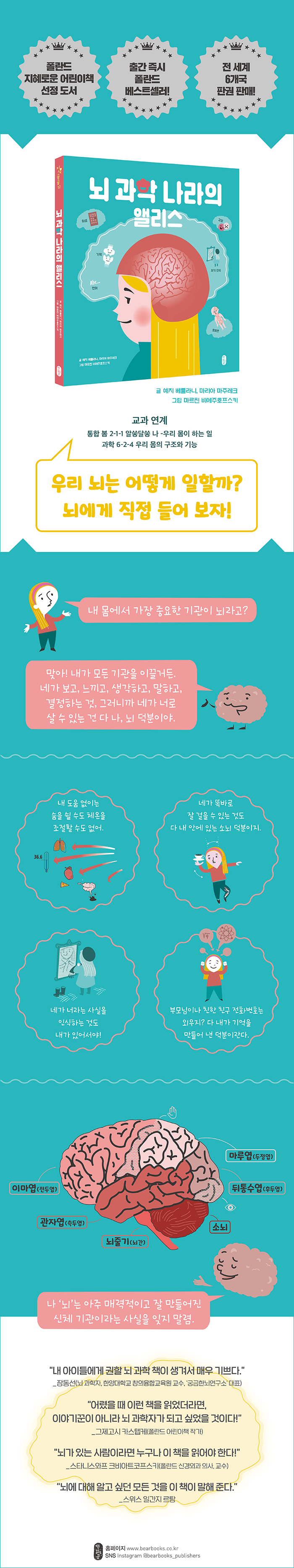 ‘뇌 과학은 어렵다’라는 오해를 풀고, 어린이에게 뇌 과학을 쉽고 재밌게 전달하기 위해 폴란드의 드림팀이 나섰습니다. 폴란드가 사랑한 뇌 과학자이자 약리학자, 교수, 그리고 대중들에게 과학을 쉽고 재밌게 전달하는 과학 전달자였던 예지 베툴라니 박사와 과학자와 나눈 대화를 대중들이 쉽게 이해할 수 있게 전달하는 기자이자 작가인 마리아 마주레크가 합을 맞춰 뇌 과학을 어린이의 눈높이에 맞춤한 글로 풀어냈습니다. 거기에 어린이와 청소년을 위한 디지털 교육을 연구하는 마르친 비에주호프스키가 그림을 맡아 어렵게 느껴질 수 있는 뇌 속 구조와 개념을 유쾌하고도 직관적으로 구현했지요. 이들의 노력에 힘입어 《뇌 과학 나라의 앨리스》는 출간되자마자 폴란드에서 베스트셀러 목록에 올랐고, 매력적이고 흥미로운 과학책에 수여하는 폴란드 올해의 지혜로운 어린이책에 선정되었습니다. 뇌 과학자이자 대중에게 뇌와 과학 기술에 대한 이야기를 들려주는 과학 전달자 장동선 교수도 ‘어른들에게도 어려울 수 있는 뇌 과학을 아이들의 눈높이에 맞춰 한 권의 책으로 담아내다니!’라며 놀라움을 표했습니다.