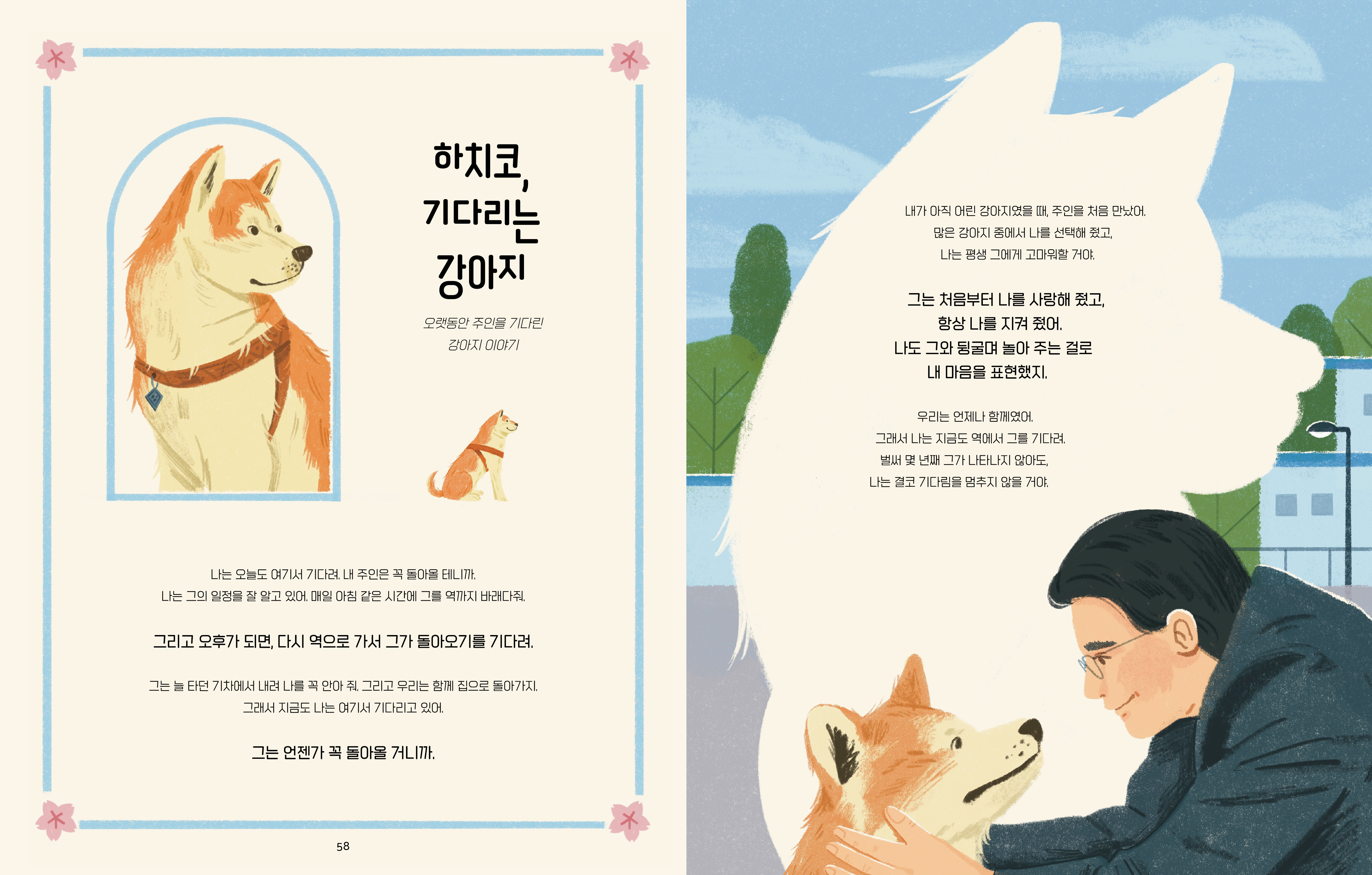 책 속 18편의 이야기는 모두 동물의 ‘목소리’로 서술되어, 어린이 독자들이 자연스럽게 그들의 마음까지 이해할 수 있도록 돕습니다. 도움과 희생, 우정, 기다림, 자유를 향한 본능적인 갈망까지… 각 이야기는 짧지만 깊은 울림을 주며 생명의 존엄과 인간과 동물이 함께 사는 세상의 가치를 마음에 새기게 합니다.