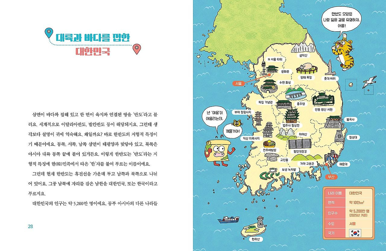 50여 컷이 넘는 지도와 사진, 그리고 흥미를 돋우는 캐릭터로 생생한 지리의 현장에 빠져들어 보세요! 우리나라, 나아가 동부 아시아, 그리고 세계 지리의 매력에 푹 빠지게 될 거랍니다.