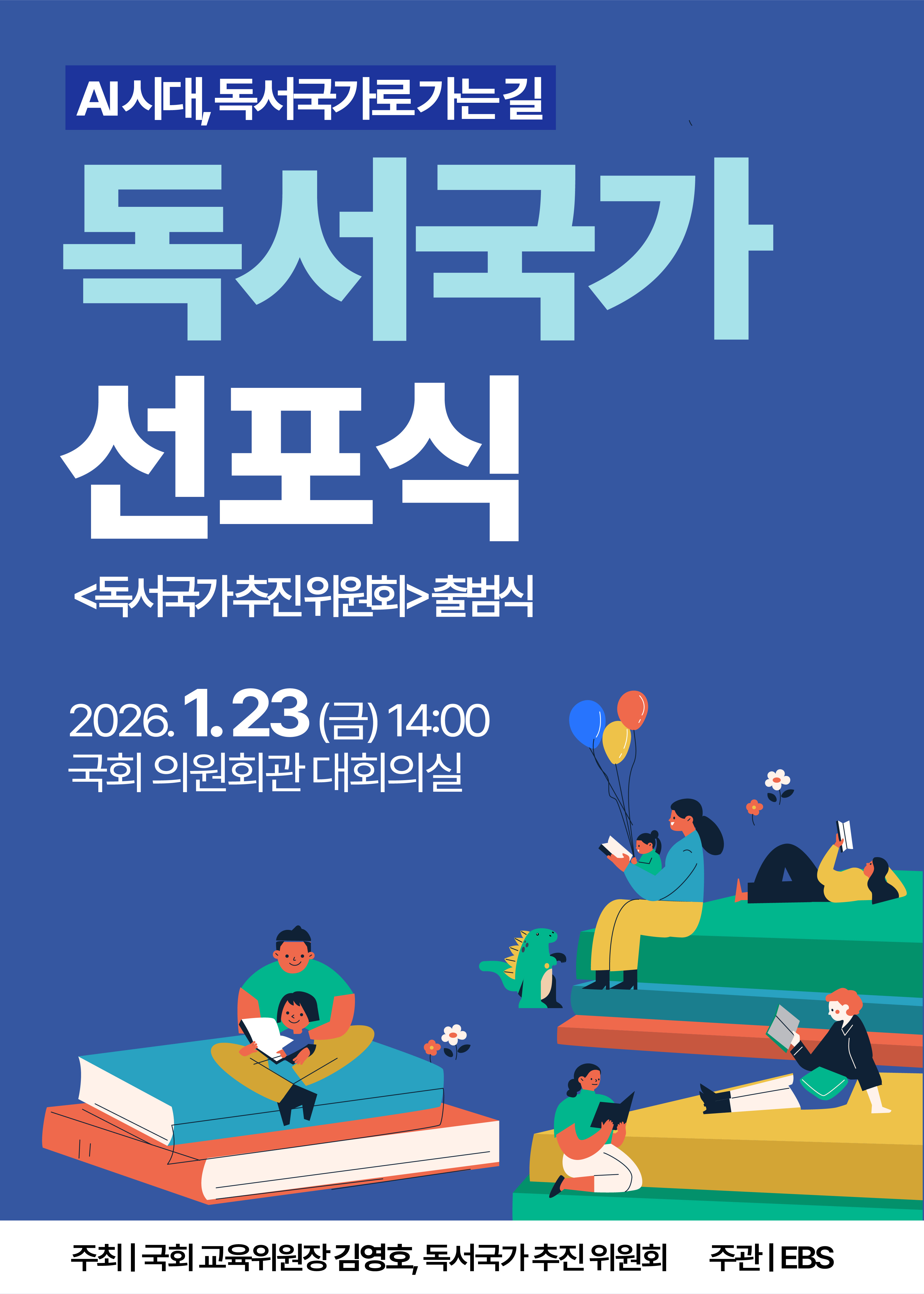 '독서국가 추진위원회' 출범식이 오는 1월 23일 금요일 국회에서 열립니다.