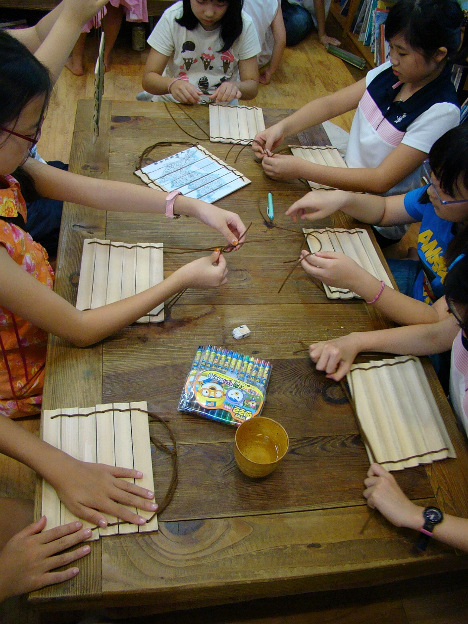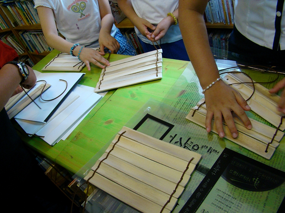 옛날에 사용하던 죽간만들기예요.