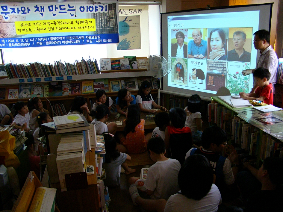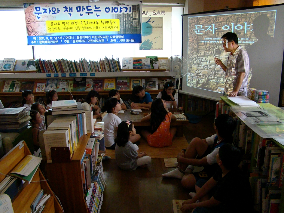 문자의 발달 과정과 책 만드는 이야기 프로그램이 문광부에서 우수 프로그램으로 선정되어 전국의 도서관에 강연을 시작했습니다.