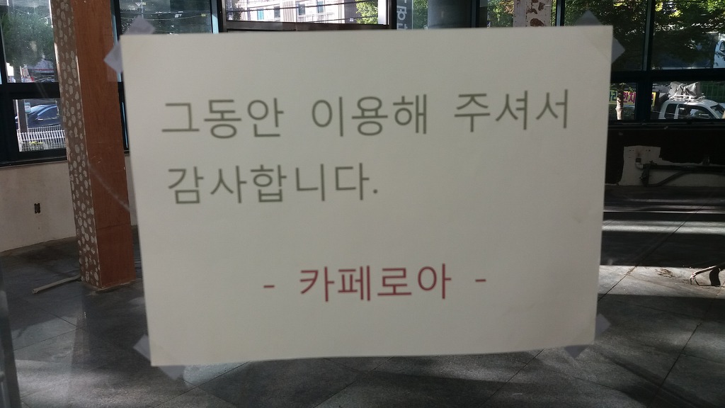 헬스장 1층 ‘카페로아’가 문을 닫았더군요.