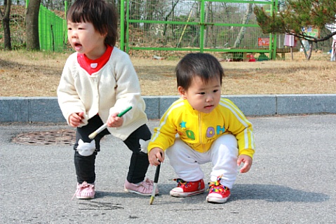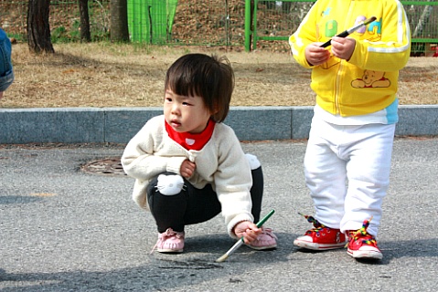 친구들과 같이 그리기도, 다소곳이 앉아서 그림을 그리기도 하는 민서랍니당 ~ :)