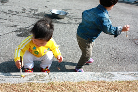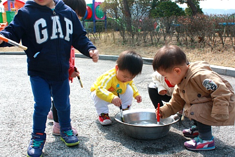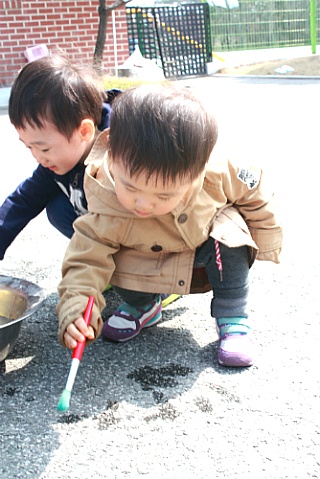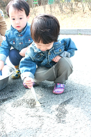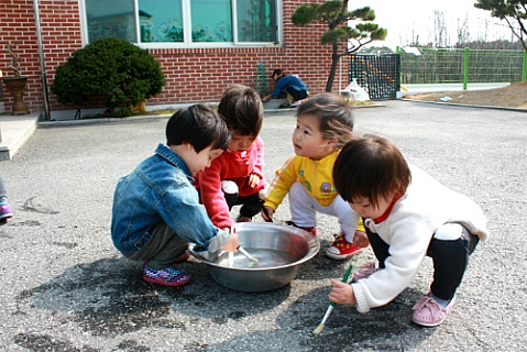이슬반 친구들이 함께 그리는 물 그림이에요~