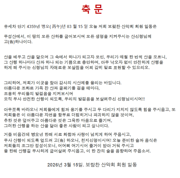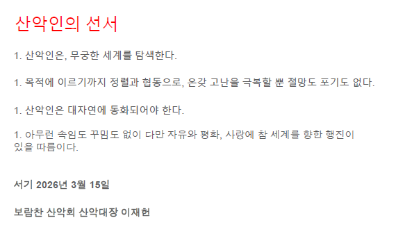 산악인은 대자연에 동화 되어야 한다.ᆢ보람찬산악회 대장 이재헌 선서